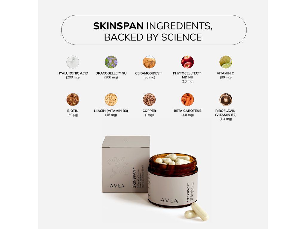 Zatímco se populární doplňky stravy pro pleť zaměřují na doplňování ztraceného kolagenu, my jsme ve spolupráci s výzkumníky dlouhověkosti ve Švýcarsku navrhli SkinSpan™ tak, aby podpořil schopnost vaší pleti hydratovat, regenerovat a obnovovat se zevnitř, než se objeví viditelné známky úbytku kolagenu.